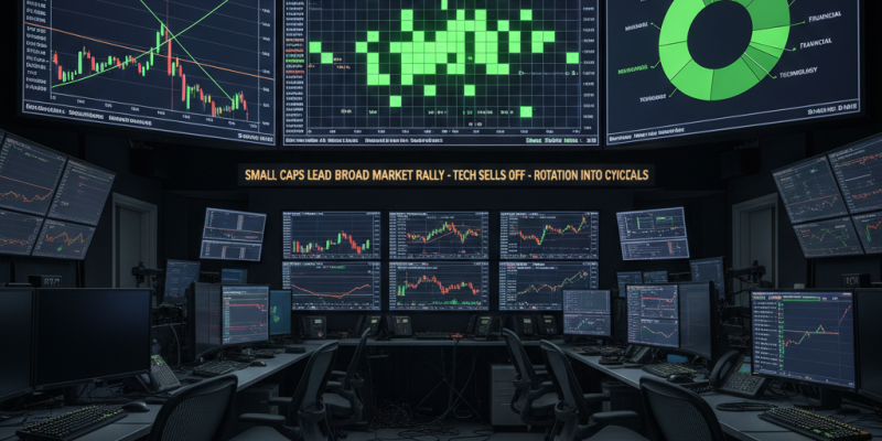 U tijeku je rotacija iz sigurnosti megakap tehnoloških dionica Veličanstvenih 7 prema rizičnijim, cikličkim segmentima. Traže se tzv. junk dionice povezane s temama AI infrastrukture, reindustrijalizacije i domaćih energetskih kapaciteta, a i slabije tehnološke dionice sada prate uzlazni trend. Rastući omjer novih maksimuma prema novim minimumima potvrđuje širu participaciju tržišta.