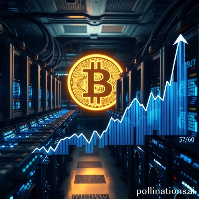 {"prompt":"High-resolution image of a Bitcoin mining farm with rows of GPU/ASIC rigs glowing in blue light, an overlaid digital chart with steep upward trend arrows and numerical data, a large translucent Bitcoin symbol in the background, dramatic lighting, futuristic data HUD, cinematic composition.","originalPrompt":"High-resolution image of a Bitcoin mining farm with rows of GPU/ASIC rigs glowing in blue light, an overlaid digital chart with steep upward trend arrows and numerical data, a large translucent Bitcoin symbol in the background, dramatic lighting, futuristic data HUD, cinematic composition.","width":768,"height":768,"seed":42,"model":"flux","enhance":false,"nologo":false,"negative_prompt":"undefined","nofeed":false,"safe":false,"quality":"medium","image":[],"transparent":false,"isMature":false,"isChild":false}
