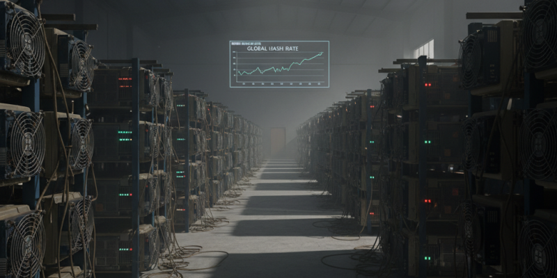 Bitcoinova mrežna računalna snaga naglo je pala uslijed pojačane obustave rudarenja u Kini. Hashrate je 15. prosinca iznosio oko 876,4 EH/s, što je pad od 5,8% u odnosu na ~930,06 EH/s dan ranije. Na tjednoj razini pad je još oštriji: s približno 1,27 ZH/s (1.270 EH/s) na 876,4 EH/s, odnosno oko 31%. Uzrok se povezuje s koordiniranim gašenjima velikih postrojenja u Xinjiangu; procjenjuje se da je ugašeno oko 400.000 ASIC uređaja, čime je s mreže nestalo približno 80–100 EH/s. Iako zabrana rudarenja u Kini postoji od 2021., provođenje je povremeno, a aktualni val pojačao je pritisak na mrežnu snagu.